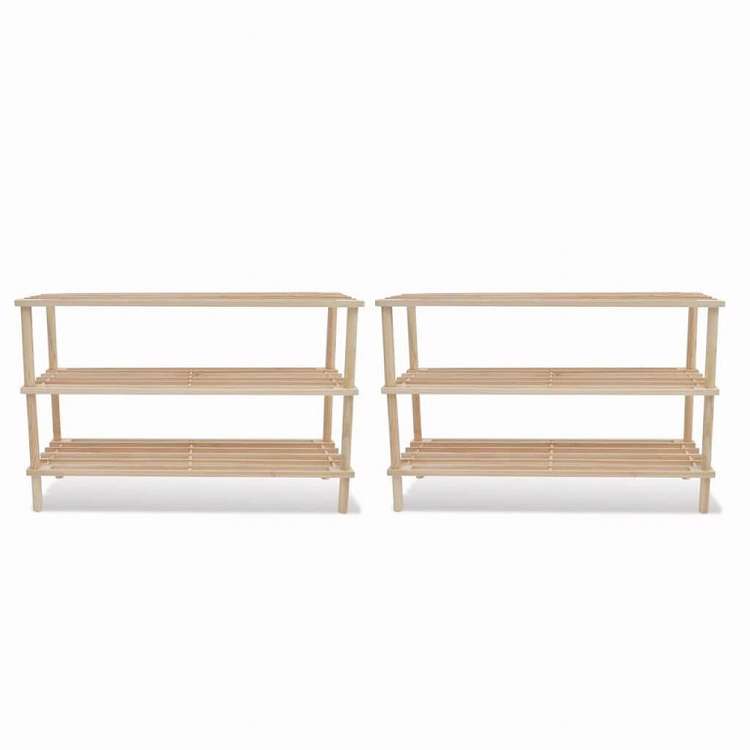 vidaXL 3段シューズラック 2点 モミ無垢材ホーム&ガーデン 家事用品 収納&オーガナイザー 衣類・ワードローブ収納 シューズラック・整理収納(代引不可)
