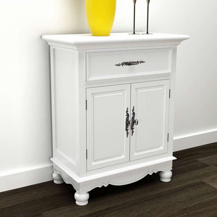 vidaXL 木製キャビネット 2ドア 引き出し1段付き ホワイト家具 キャビネット&収納 サイドボード(代引不可)