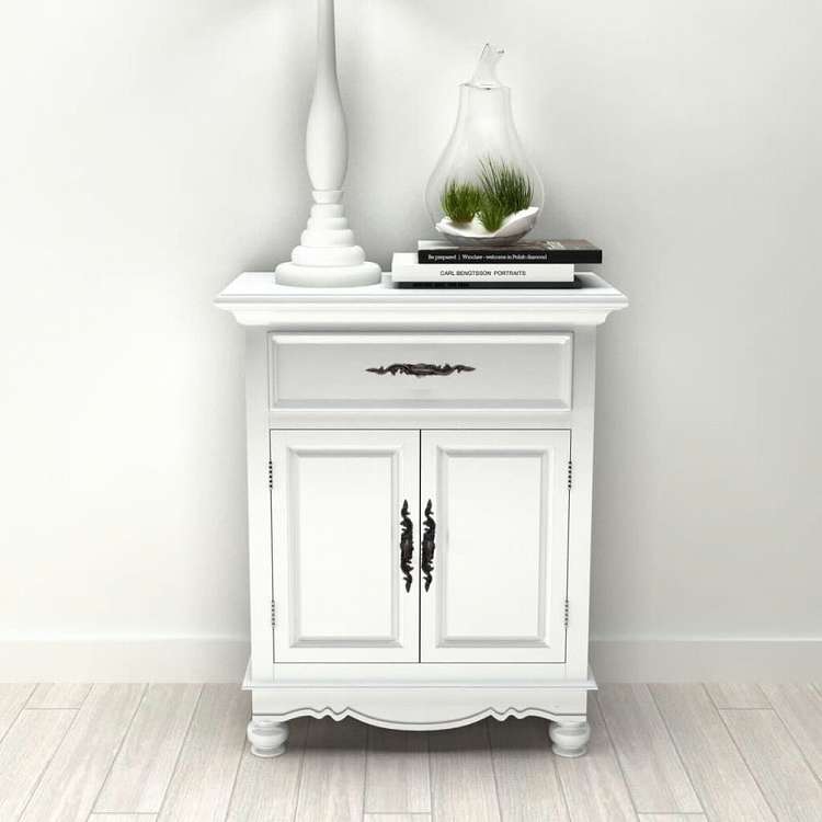 ■アンティーク調でエレガントな床置きキャビネットは、ドア2点と引き出し1点を備えており、収納スペースたっぷり。持ち物をきちんと整理するのに役立ちます。寝室、キッチン、バスルームなど、どんなお部屋にもぴったり。 引き出しは開きやすく、必要なものをすぐに取り出せます。頑丈なMDFとパインウッドでできており、キャビネットは日常使いに耐えうる耐久性に優れています。白い塗装仕上げだから、湿った布でさっと一拭きと、お手入れ簡単楽々。