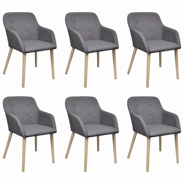 vidaXL ダイニングチェア 6点セット ライトグレー ファブリック&オーク無垢材家具 チェア キッチン・ダイニングルームチェア(代引不可)