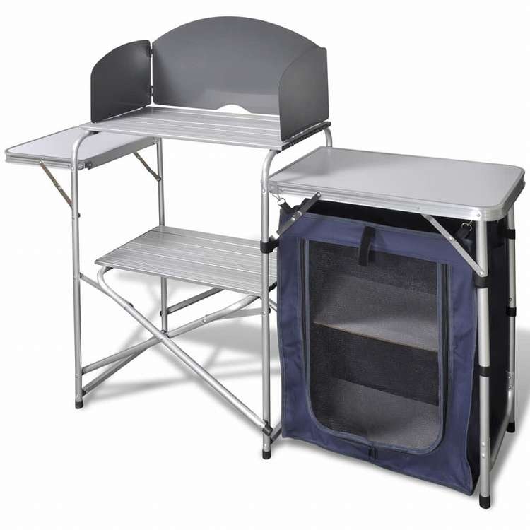 vidaXL 折りたたみキャンプ用キッチンユニット 風防アルミ付きスポーツグッズ アウトドアレクリエーション キャンプ&ハイキング キャンプ家具(代引不可)