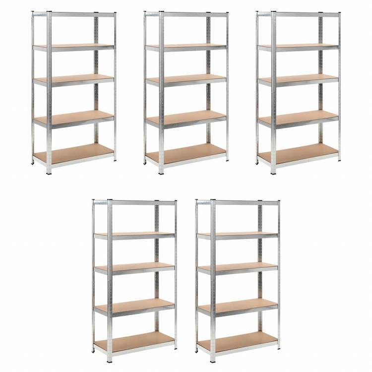 vidaXL 頑丈な5段シェルフ 5点 シルバースチール&エンジニアリングウッドビジネス&工業用 工業用収納 業務用収納棚(代引不可)
