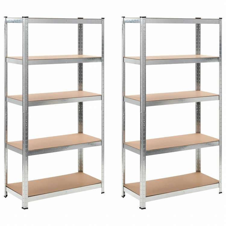 vidaXL 頑丈な5段シェルフ 2点 シルバースチール&エンジニアリングウッドビジネス&工業用 工業用収納 業務用収納棚(代引不可)