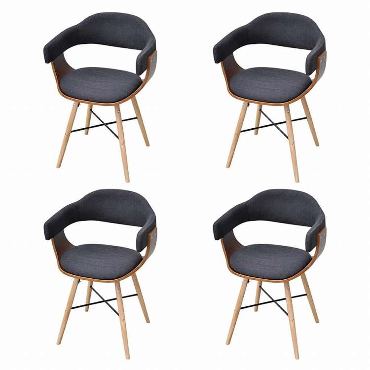 vidaXL ダイニングチェア 4点 曲木細工&布製 ダークグレー家具 チェア キッチン・ダイニングルームチェア(代引不可)