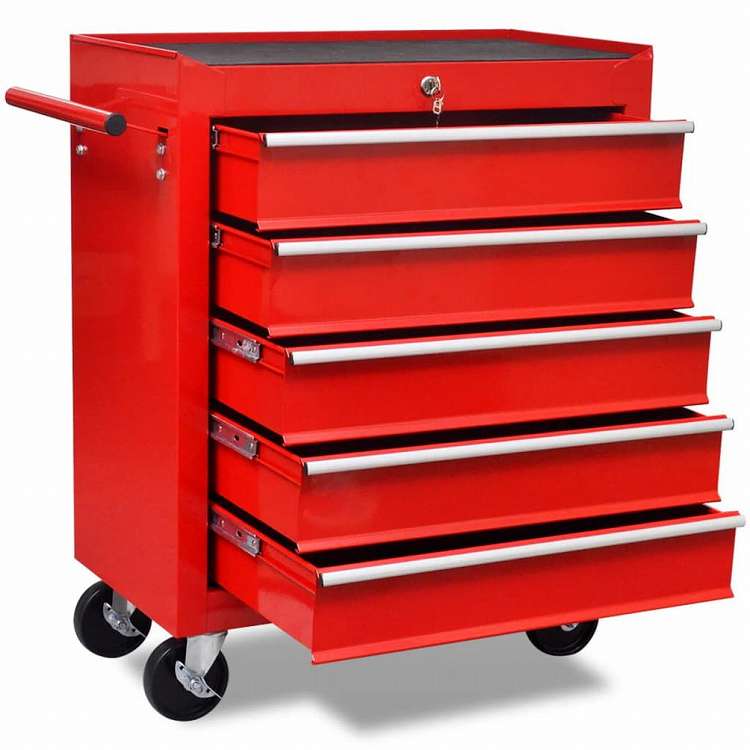 vidaXL ワークショップツールワゴン 5段引き出し 赤色ハードウェア ツール ドーリー・ハンドトラック(代引不可)