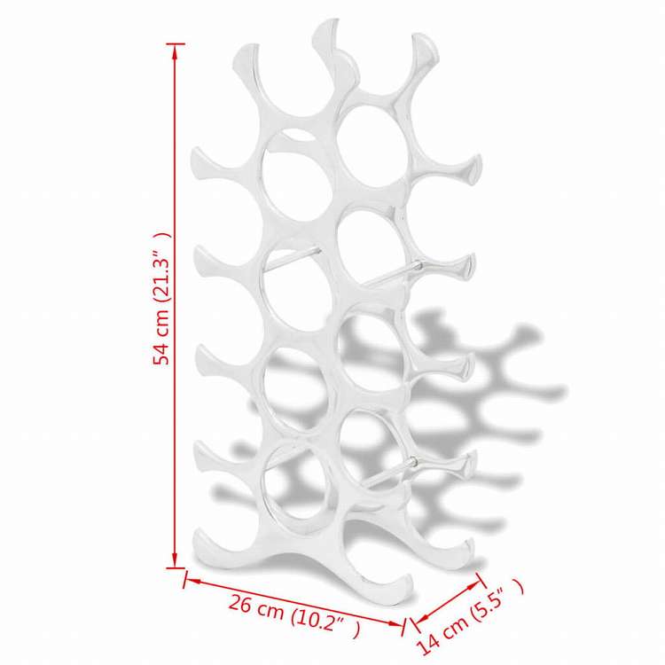 ■このワインラックは、お気に入りのワインを収納して整理するのに役立ちます。実用的でありながら、お部屋を素敵に彩るデザイン性が光ります。 このワインラックには、最大15本のボトルを収納できます。ユニークな形状は、モダンながらエレガントなスタイル感を生活空間にプラスします。ワイン好きのお友達やお知り合いへの素晴らしい贈り物にもなるでしょう。 丁寧に磨き上げられた、高品質のアルミ製であり、非常に耐久性に優れています。 モダンスタイルのワインラックをお家にどうぞ! ボトルは商品に含まれませんのでご注意ください。