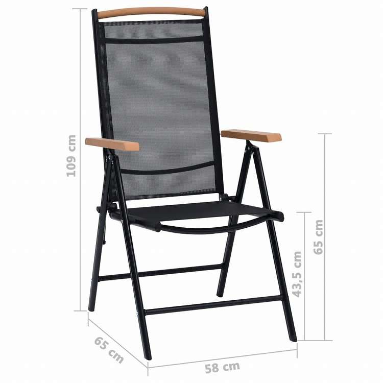 vidaXL 折りたたみガーデンチェア 2点 アルミ&合成繊維 ブラック家具 アウトドア家具 屋外椅子 アウトドアベンチチェア(代引不可)