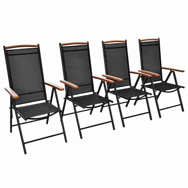 vidaXL 折りたたみガーデンチェア 4点 アルミ&合成繊維 ブラック家具 アウトドア家具 屋外椅子 アウトドアベンチチェア(代引不可)