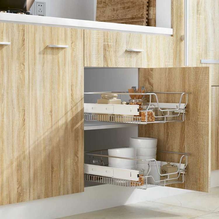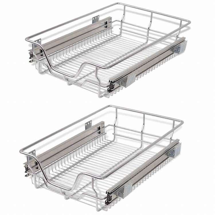 vidaXL 引き出し式 ワイヤーバスケット 2点 シルバー 400 mmホーム&ガーデン キッチン&ダイニング キッチンツール&調理器具 キッチン収納 調理道具ホルダー・ラック(代引不可)
