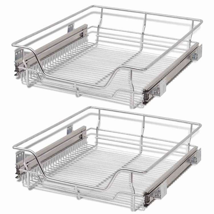 vidaXL 引き出し式 ワイヤーバスケット 2点 シルバー 500 mmホーム&ガーデン キッチン&ダイニング キッチンツール&調理器具 キッチン収納 調理道具ホルダー・ラック(代引不可)