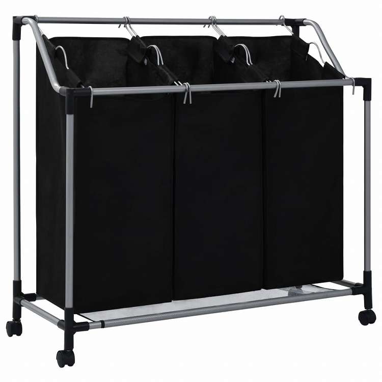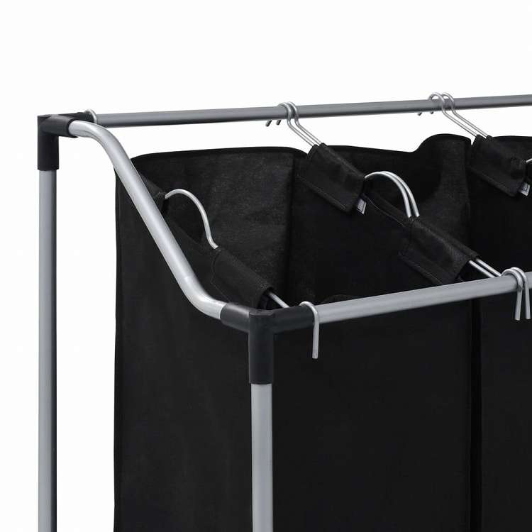 vidaXL ランドリーソーター 3バッグ付き ブラック スチール製ホーム&ガーデン 家事用品 ランドリー用品 洗濯かご(代引不可)