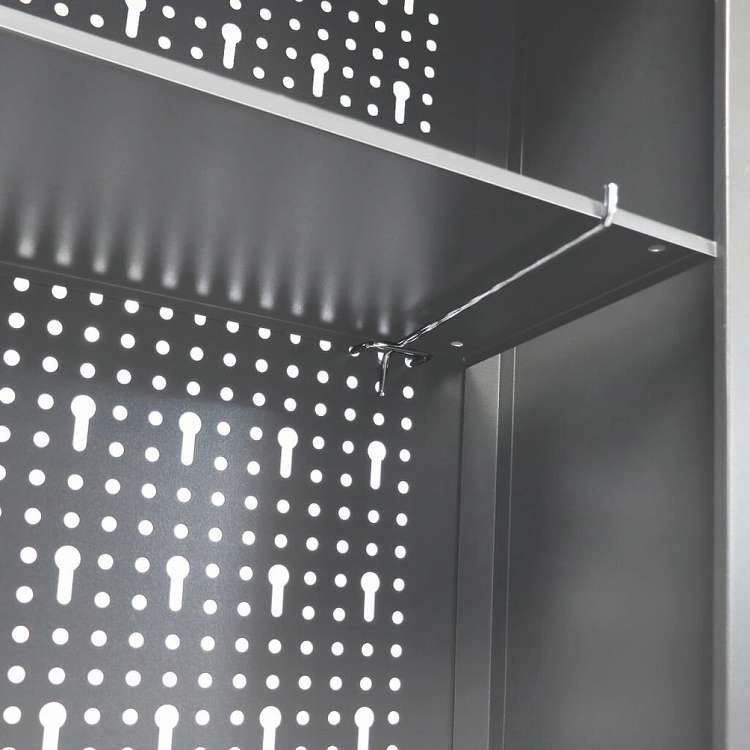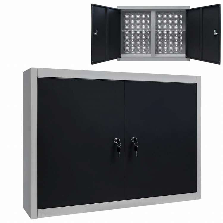 ■この壁に取り付けられたツールキャビネットは、工具を保管するのに理想的であり、かっこよく、インダストリアルなスタイルであなたの家にユニークな装飾を加えることもできます。 このストレージユニットは、高さ調節可能な棚2つと、スパナ、ペンチ、ハンマーなどのさまざまな種類の工具を吊るすために使用するユーロ穴プレートを備えています。ロック可能なドア2つ(鍵が各ドア2つ含まれています)を装備 、ツールキャビネットはさらなる安全性を提供します。 金属製で、非常に強力な傷防止コーティングが施されているため、耐久性があり、お手入れも簡単です。 この製品は組み立てが必要です。