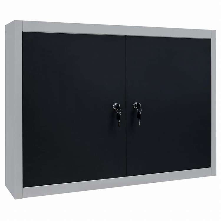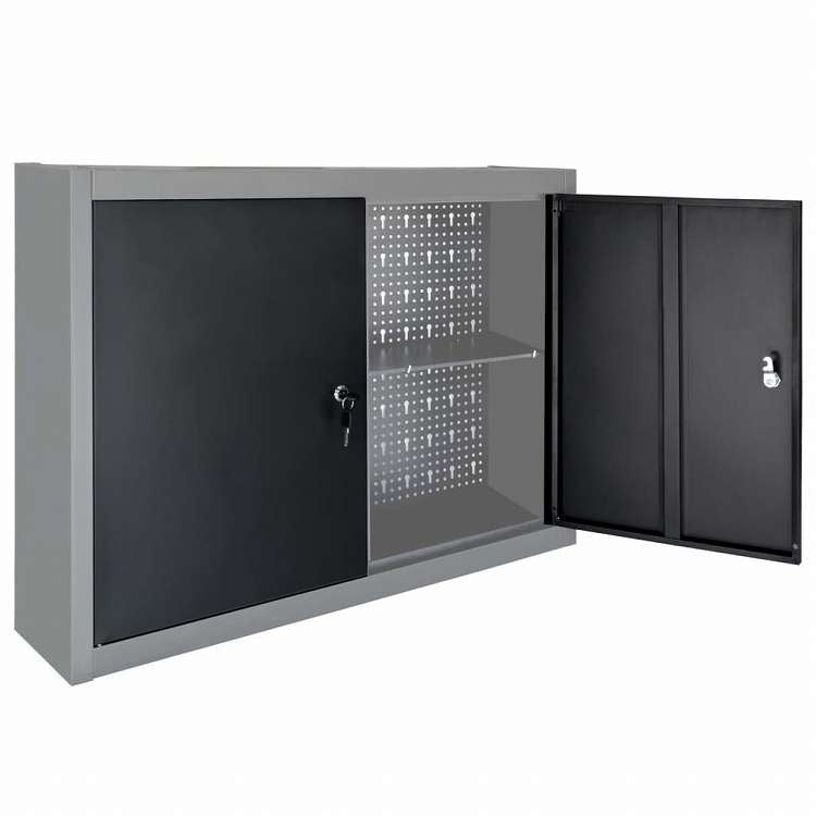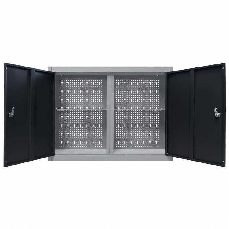 vidaXL 壁掛け ツールキャビネット インダストリアルスタイル 金属製 グレー&ブラックハードウェア ハードウェアアクセサリ 工具収納・整理整頓 ツールキャビネット(代引不可)