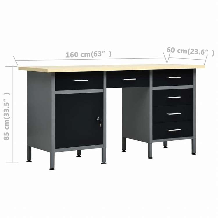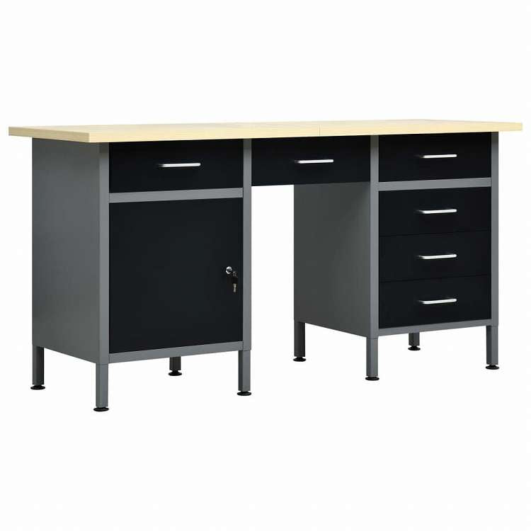 vidaXL ワークベンチ スチール製 ブラック 160x60x85 cmハードウェア ハードウェアアクセサリ 工具収納・整理整頓 ワークベンチ(代引不可)