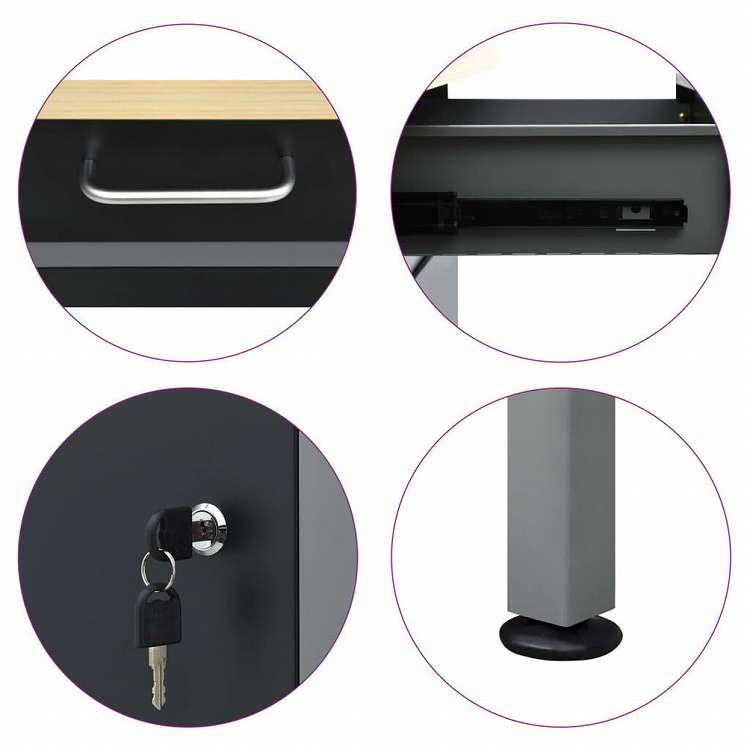 ■十分な収納スペースと500kgの積載量を備えた頑丈な作業台。ワークショップやガレージに欠かせないものになります。 大きくて頑丈な天板は、すべての修理作業に安定したプラットフォームを提供します。ワークベンチには6つの引き出しがあり、ネジ、釘、粘着テープなどのツール、部品、アクセサリを適切に整理できます。引き出しには、スムーズなスライドを実現するボールベアリング機構が装備されています。大型工具に適したコンパートメント、ロック可能なドア付きのキャビネットがあり、ドリル、ケーブルドラム、グラインダーを簡単に収納できます。 さらに、足は高さ調節可能です。ワークステーションは必要な場所に置くことができ、平らでない地面でもしっかりと立ちます。この作業台は、プレミアムスチールと合板でできているため、頑丈で耐久性にも優れ、お手入れ楽々。また、組み立ても簡単です。ワークベンチは、修理作業やDIYの夢をかなえるための、大きな助けとなってくれます。