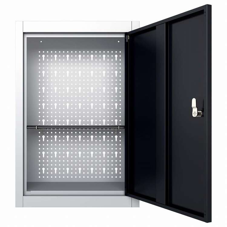 vidaXL 壁掛けツールキャビネット 工業用 金属製 グレー&ブラックハードウェア ハードウェアアクセサリ 工具収納・整理整頓 ツールキャビネット(代引不可)