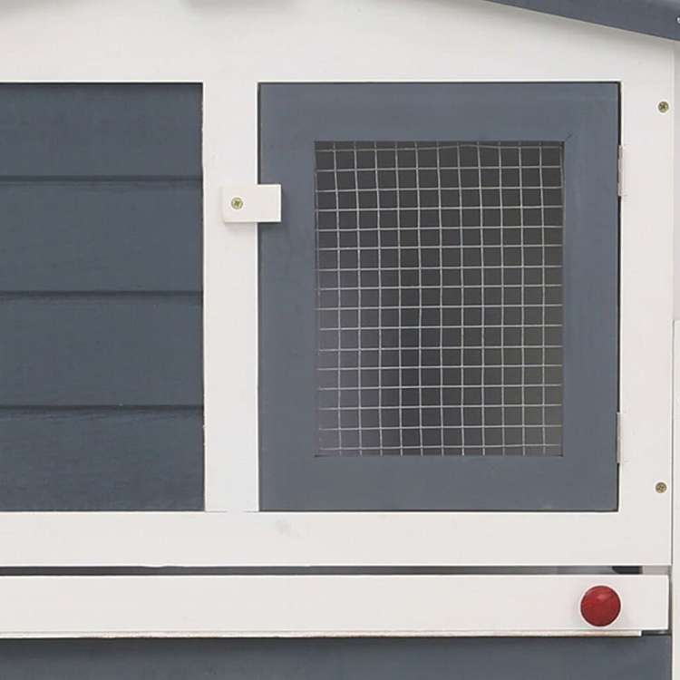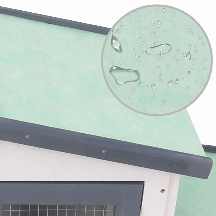 ■小屋に使用されている塗装された無垢のモミ材は長持ちする素材で、安全です。アスファルト製の屋根は、太陽、雨、雪から大切なペットを守ります。上層階部分は、雨の日でも、暖かく安全で、濡れることはありません。上層階のスリーピングエリアは、両側のスロープから簡単に出入りできます。取り外し可能なトイレトレー付きで、簡単に掃除できるデザインになっています。耐久性抜群のフェンスワイヤーを備えた屋外の飼育場は、新鮮な空気を十分取り入れながら、ペットの逃げ出しと捕食動物の侵入を防ぎます。ペットを保護し、ペットの出入れが簡単なロック付きドアを採用しています。