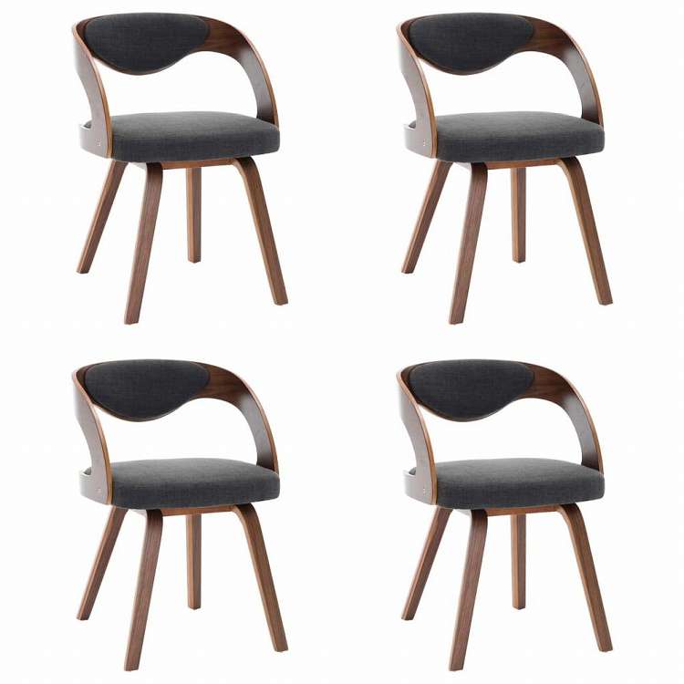 vidaXL ダイニングチェア 4点 曲木細工&布製 ダークグレー家具 チェア キッチン・ダイニングルームチェア(代引不可)