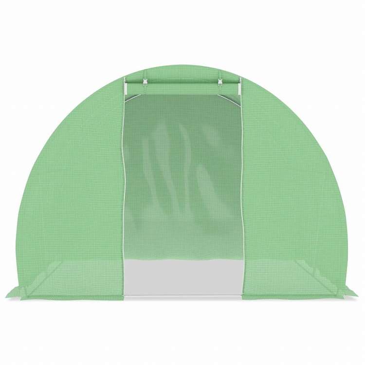 ■広々とした温室は、かなりの数の果物、野菜、植物を育てられます。 このプラントハウスは、大切な植物を風、雨、日光、鳥の被害からしっかりと保護するのにぴったりです。温室は他社の標準メッシュ生地よりも25%重く、頑丈な140g/m[2]のポリエチレン製メッシュ生地でできており、様々な悪影響を効果的に防いでくれます。さらに安定性を高めるよう、フレーム構造は頑丈で錆びない、亜鉛メッキスチールを使用しています。この温室には、サイズ38x38cmの換気窓と、サイズ100x185cmのドアが1枚がついています。 この温室は組み立てが簡単です。土台を追加することで、より頑丈になりますので、追加することをお勧めします。温室の屋根は多量の積雪には耐えられません。ご注意ください。 警告:この温室は、レジャーを目的とした建築物や温室ではありません。趣味の園芸を目的とした非永久的な独立型農業設備です。