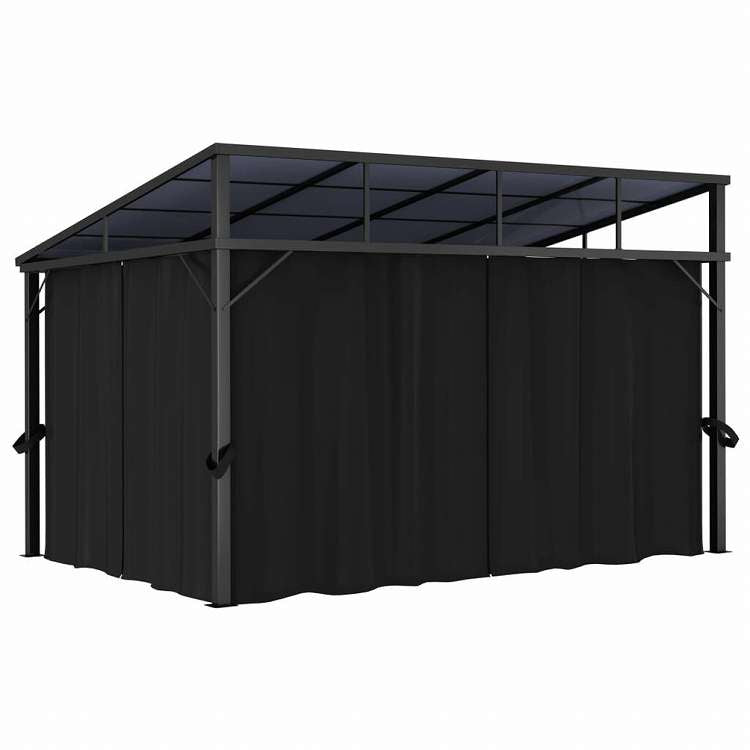 vidaXL ガゼボ カーテン付き 405x294x244 cm アントラシートホーム&ガーデン 芝&ガーデン アウトドアリビング アウトドアストラクチャー キャノピー・ガゼボ(代引不可)