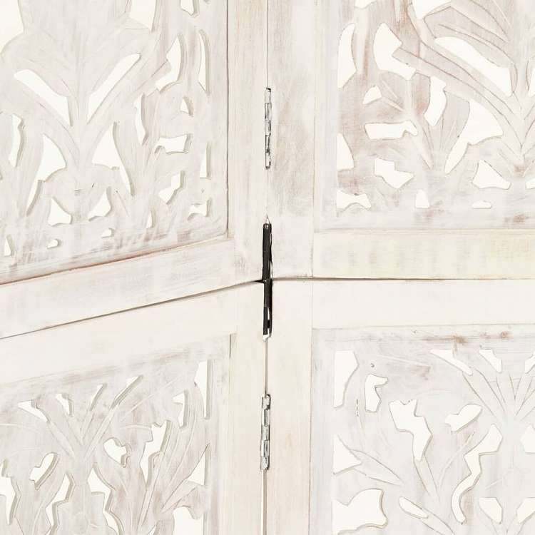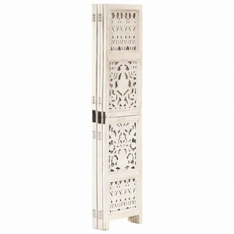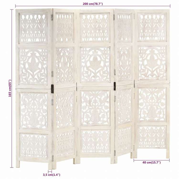 vidaXL 手彫り間仕切り 5枚パネル ホワイト 200x165cm マンゴー無垢材家具 間仕切り(代引不可)