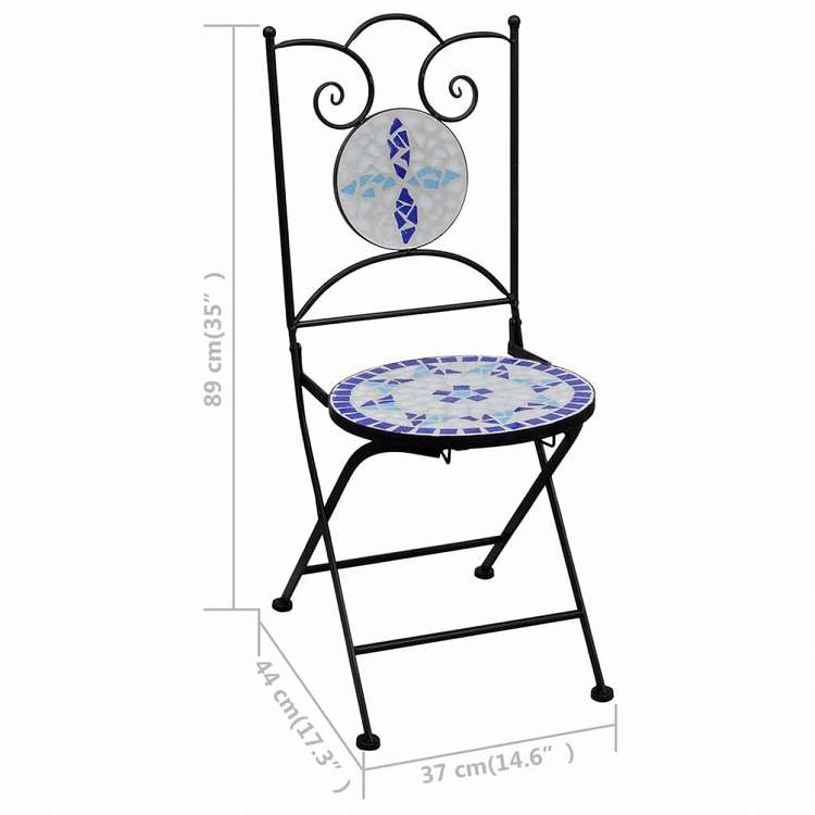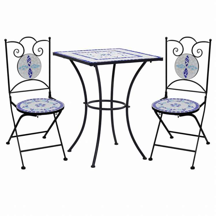 vidaXL モザイクビストロ3点セット セラミックタイル ブルー&ホワイト家具 アウトドア家具 屋外家具セット(代引不可)