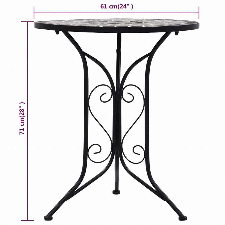 ■このスタイリッシュなビストロセットで、ガーデン、パティオやバルコニーにロマンチックな色彩を添えましょう。この装飾的で機能的なガーデンファニチャーセットに囲まれ、くつろぎながら楽しむご友人とのおしゃべりや喫茶のひと時は、とても充実したものとなるでしょう。 強力な粉体塗装の鉄フレームとセラミックタイルにより、本セットのテーブルと椅子は頑丈で耐久性があり、掃除も簡単になっています。 テーブル1点と椅子2点をセットでお届けします。注:寒い時期に外に置いておくのは不向きです。