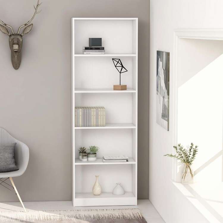 vidaXL 5段 ブックキャビネット 白色 60x24x175cm パーティクルボード家具 棚 本棚・オープンラック(代引不可)