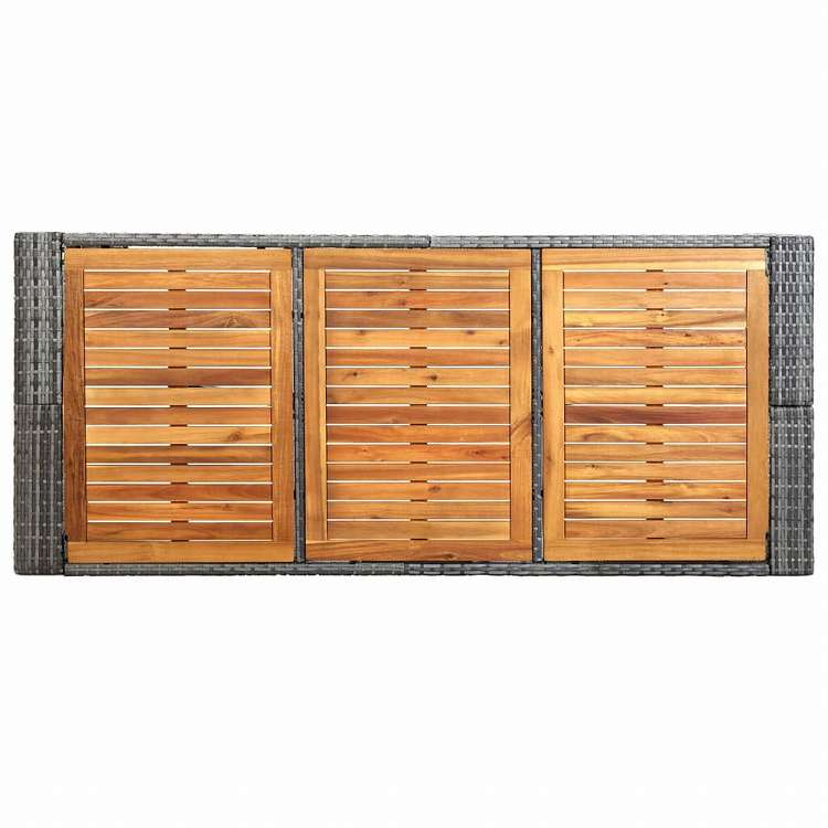 ■エレガントなデザインが特徴的なポリラタンバーファーニチャーセットは、あなたのお庭、パティオ、テラスなどへ、ふと目に留まる印象的なワンポイントをプラス。 粉体塗装仕上げのスチール製フレームの構造で、セットは丈夫で頑丈さに優れています。軽量構造のおかげで、すべての家具は、お手軽に動きやすい設計です。耐候性と防水性のあるPE製籐を使用することで、お手入れが簡単なバーセットを実現。テーブルトップは熱帯広葉樹である無垢のアカシア製で、高耐候性と高耐久性があり、長年屋外でご利用いただけます。 厚くてふわふわと柔らかく、ウレタンフォーム入りの座面クッションは、座り心地と快適さを提供します。撥水性のポリエステルのカバーは、ジッパー付きで、簡単に取り外して洗濯可能。 注意:雨、雪、霜といった悪天候の場合には、カバーをかけることをお勧めします。