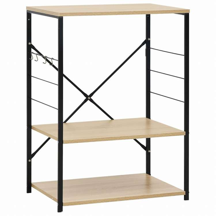 ■この3段の電子レンジキャビネットがあれば、ご自宅のインテリアに時代を選ばないアクセントをプラスしつつ、あらゆるスペースを有効に活用できます。 エンジニアリングウッド製のこのキッチンシェルフは、湿らせた布で拭くだけと、お手入れが簡単です。スチール構造なので錆びにくく、頑丈です。この棚は3段になっており、物を保管するのに十分なスペースが備わっています。このキャビネットには、鍋やフライパン、調理器具、キッチンミトンなどを掛けるためのサイドアクセサリーフックが付いています。リビングルームやオフィスでコレクション品やフォトフレームなどを展示するのにも使えます。 組み立て簡単。