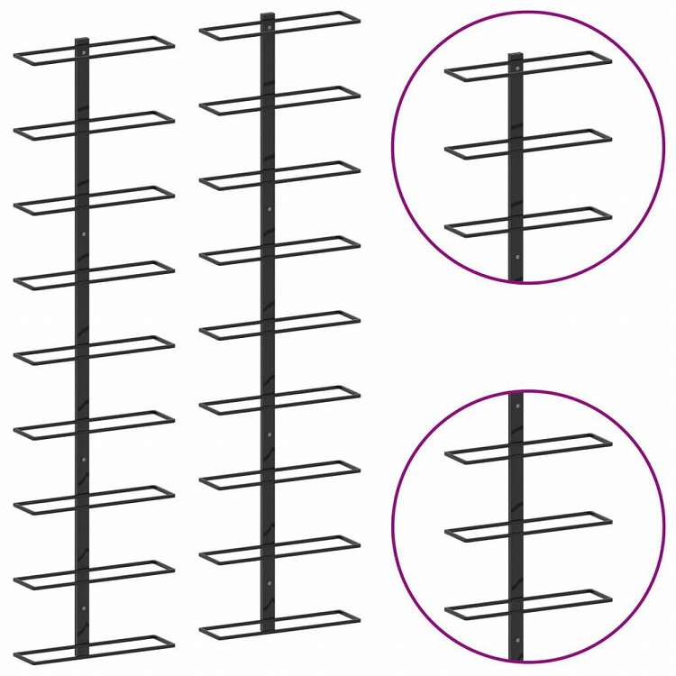 vidaXL 壁掛けワインラック 18本 2点 ブラック 鉄製家具 キャビネット&収納 ワインラック(代引不可)