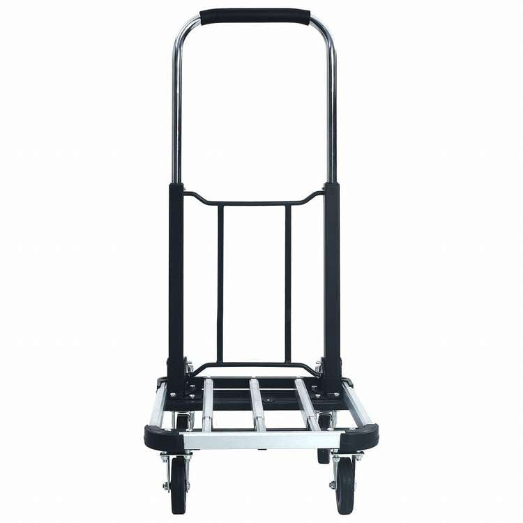 ■この折りたたみ台車は、荷物などを運ぶのに理想的です。 折りたたみ台車は、錆びにくく軽量です。最大150kgの重量を運べて、アルミ製です。ガーデントロリーや台車等としても使えます。ハンドルの高さは40cmから95cmまで調節可能で、とても便利で実用的です。折りたたみ式デザインが特徴で、使用しないときは簡単に収納できます。 このキャリーカートには、スイベルホイール4点とブレーキ付き後輪2点があり、柔軟性と安定性を備えています。ABS衝突保護角度で設計されているため、荷物を運ぶときに重大な損傷をしっかり防止できます。