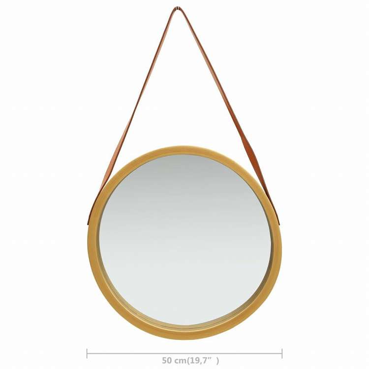 vidaXL ウォールミラー ストラップ付き 50cm ゴールドホーム&ガーデン デコレーション 鏡(代引不可)
