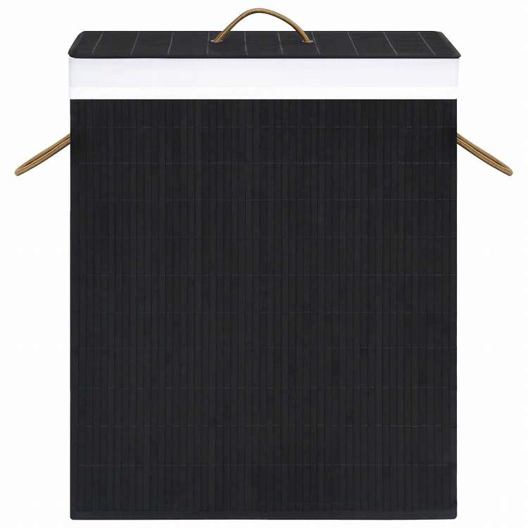 vidaXL 竹製ランドリーバスケット 2セクション ブラック 100Lホーム&ガーデン 家事用品 ランドリー用品 洗濯かご(代引不可)