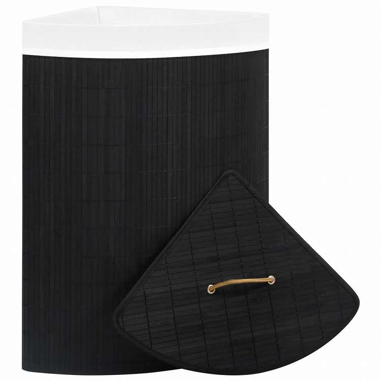vidaXL コーナーランドリーバスケット 竹製 ブラック 60Lホーム&ガーデン 家事用品 ランドリー用品 洗濯かご(代引不可)