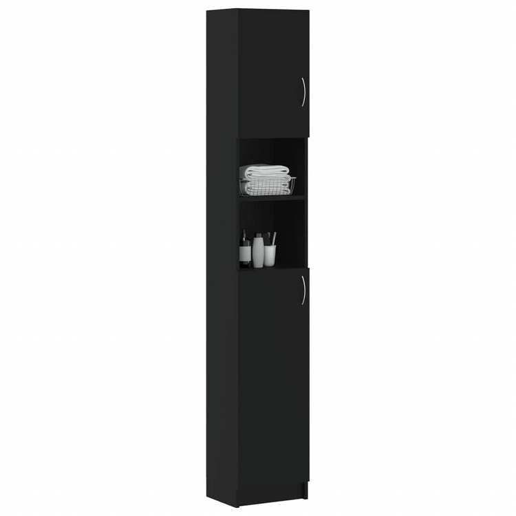 vidaXL バスルームキャビネット ブラック 32x25.5x190cm エンジニアリングウッド家具 家具セット バスルーム家具セット(代引不可)