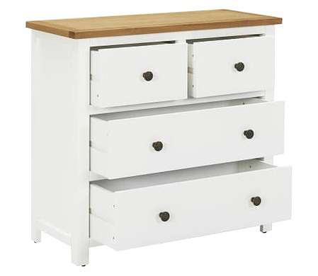■この木製の引き出し付きチェストで、大切なお持ち物をまとめて安全に収納しましょう。 この引き出し付きキャビネットのトップ面は、オーク無垢材とオーク調ベニヤ付きのMDFでできており、ボディは無垢のアカシアウッド製です。むき出しの木目は、どの収納キャビネットもちょっぴり独特に仕上げています。加えて、4つの引き出しには、衣類や小物といったアイテムを整理するスペースが十分あります。 重要事項:自然素材であるため、各木製チェストによってカラーは異なります。それぞれ一点ものとなります。