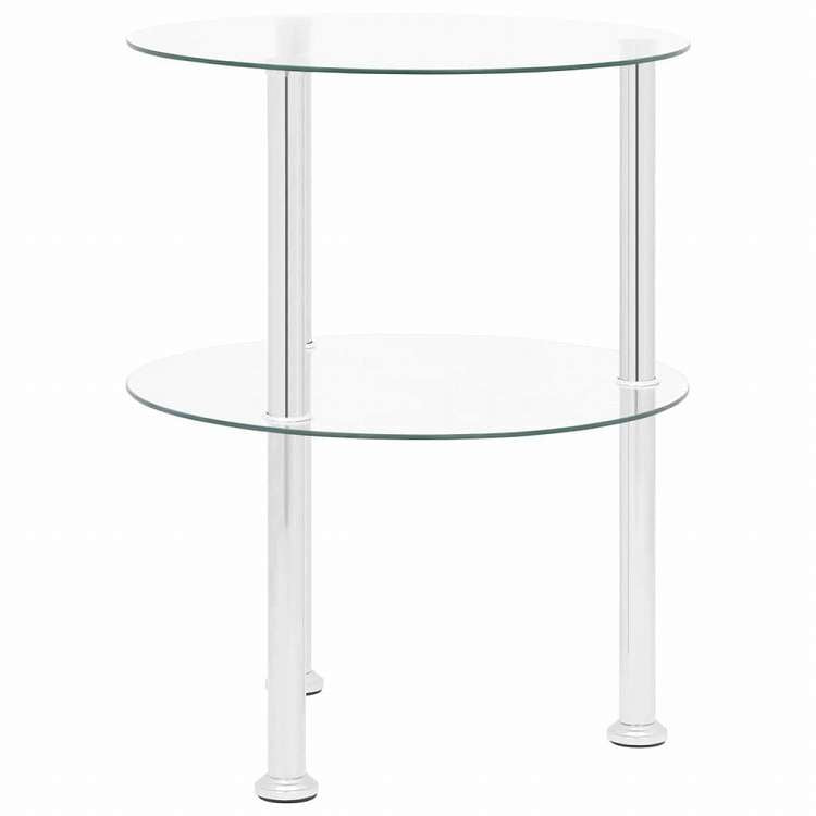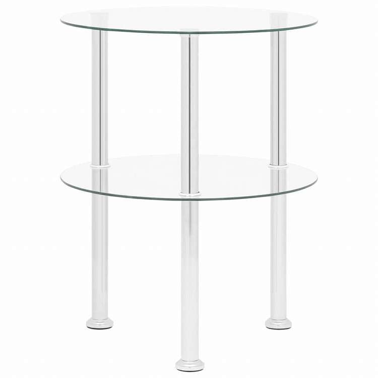 vidaXL 2段 サイドテーブル 透明 38cm 強化ガラス製家具 テーブル アクセントテーブル エンドテーブル(代引不可)