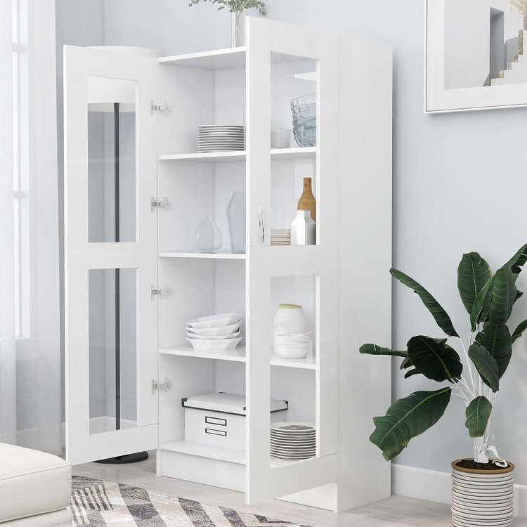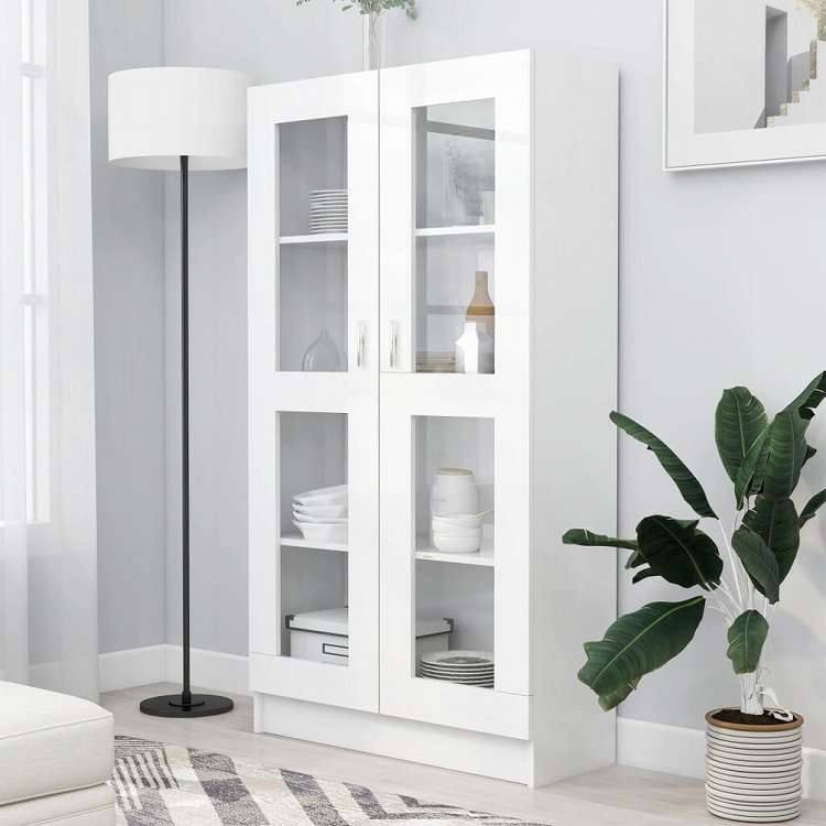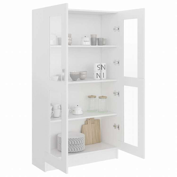 vidaXL ガラスキャビネット ホワイト 82.5x30.5x150cm エンジニアリングウッド家具 棚 本棚・オープンラック(代引不可)