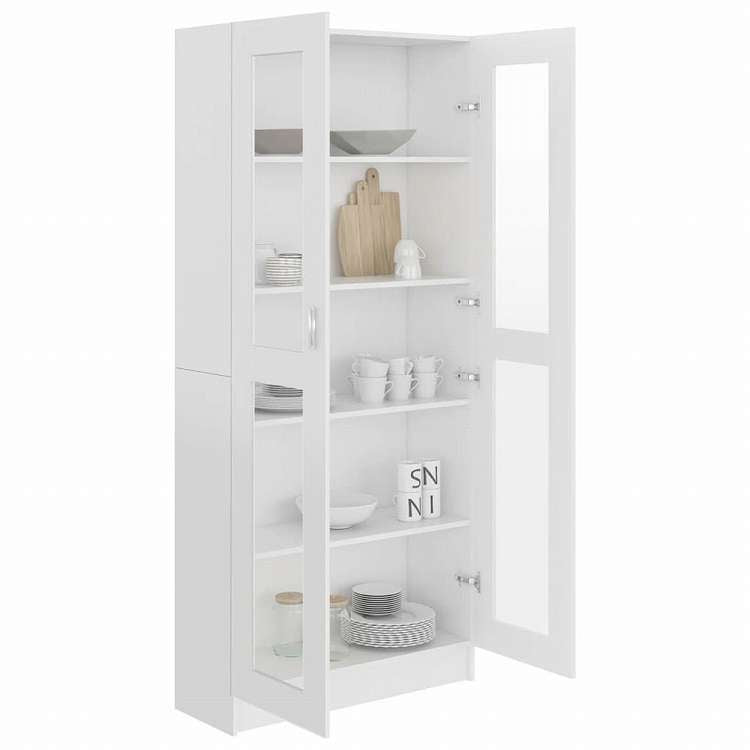 vidaXL ガラスキャビネット ホワイト 82.5x30.5x185.5cm エンジニアリングウッド家具 棚 本棚・オープンラック(代引不可)