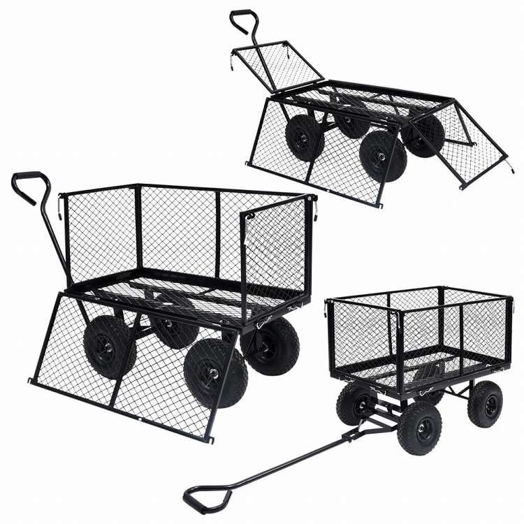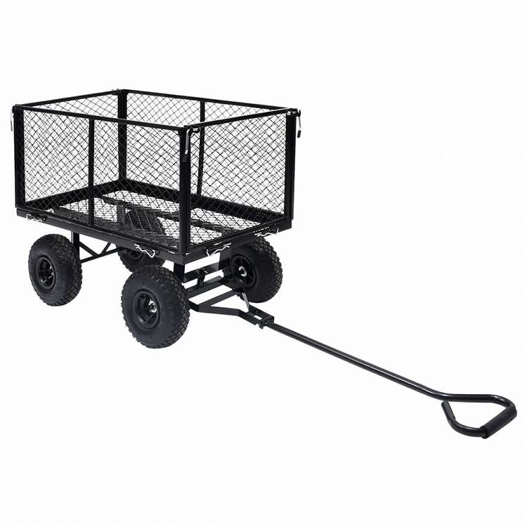 ■耐久性が高く、スチール構造が特徴の手押し車です。様々な園芸作業に最適。 頑丈なスチールで出来たこのガーデンカートは、安定性と耐久性に非常に優れています。最大積載量は350kgで、花や葉、丸太、その他の物資の運搬が簡単に行えます。サイドパネルはクイックリリース式のファスナーを使って開くことができ、荷物の積み下ろしが簡単にできます。また大型の空気圧式ホイールを採用しているため、安定性のない凸凹の不整地であっても、楽に引くことができます。パッド入りのハンドルでしっかりと握ることができます。 お子様を乗せて使用するトローリーではなく、その目的での使用には適していませんのでご注意ください。手押し車用のライナーはお届けに含まれていませんが、同ショップ内でご購入頂けます。