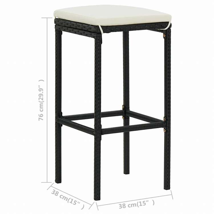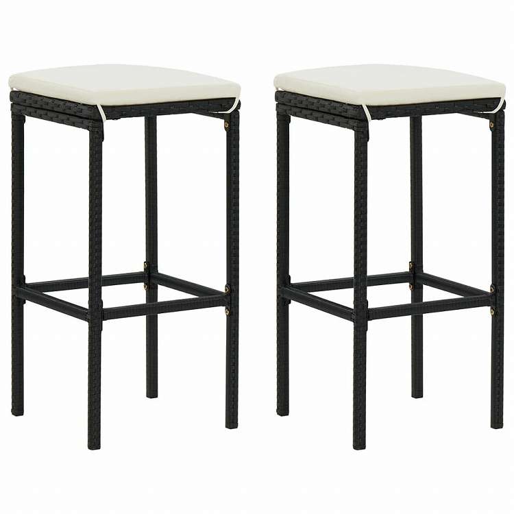 vidaXL バースツール 2点 クッション付 ポリラタン製 ブラック家具 チェア テーブル・バースツール(代引不可)