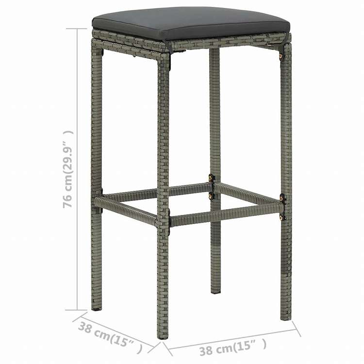 vidaXL バースツール 4点 クッション付き ポリラタン製 グレー家具 チェア テーブル・バースツール(代引不可)