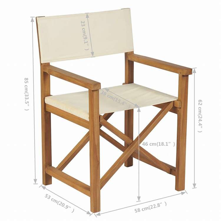 ■木製のディレクターズチェアは象徴的なデザインで、お庭やパティオでの使用にぴったりです。 耐久性抜群なチークの硬材製で、熟成、窯乾燥し、細かく研磨を施して、非常に滑らかな外観に仕上げました。チーク材は、非常に高い強度と耐候性で知られており、どの木材よりもガーデン家具に適しています。長く使えるガーデン家具をお探しの方には、チーク材は最適です。 シートと背もたれが椅子の座り心地を高めます。庭やバルコニーのラウンジチェアとして、またキッチンやダイニングルームのダイニングチェアとしても使えます。椅子は簡単に折りたたんで収納できます。組み立ては容易です。 ポイント: このチェアは家庭での使用を想定されてデザインされているため、業務用またビジネスの場面で高い頻度で使用することは推奨されません。
