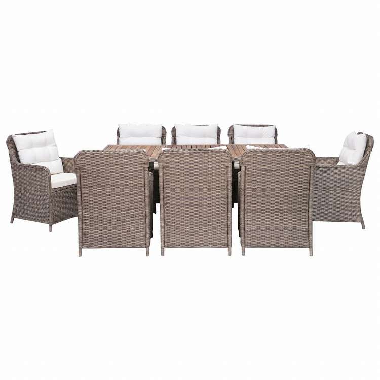 vidaXL 屋外ダイニング9点セット クッション付 ポリラタン製 ブラウン家具 アウトドア家具 屋外家具セット(代引不可)