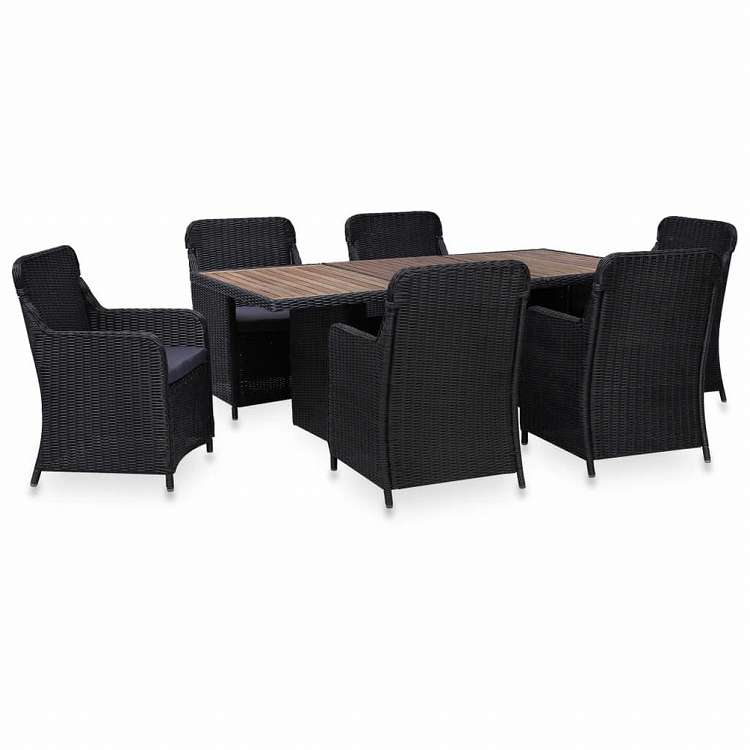 vidaXL 屋外ダイニング7点セット ポリラタン製 ブラック家具 アウトドア家具 屋外家具セット(代引不可)