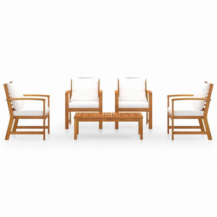 vidaXL ガーデンラウンジ5点セット クッション付き アカシア無垢材家具 アウトドア家具 屋外家具セット(代引不可)