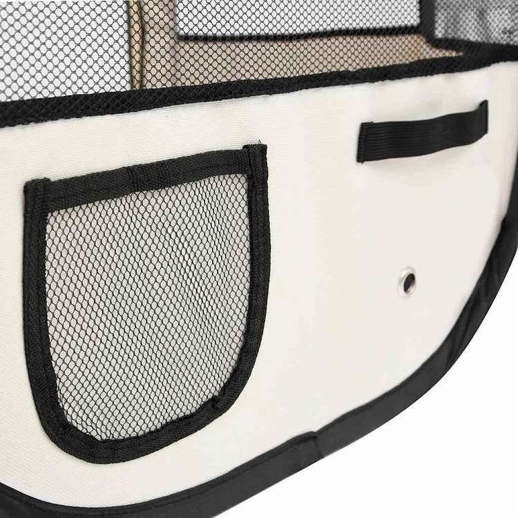 ■この折りたたみ犬用プレイサークルは、犬のトレーニングに最適です。寝る場所、遊び場、走り回れるエリアとして使用できます。 このプレイサークルは、145x145x61cmのサイズで、自宅や旅行先での使用に最適です。収納に便利なキャリーバッグ付きでお届けします。強度の高いスチールフレームは、軽量ながら頑丈さ抜群。メッシュのルーフとドアは、ジッパーですばやく開閉できます。サイドネットは、空気を十分循環し、優れた視認性があります。さらに、サイドポケットはおもちゃなど、小物を収納するのに便利です。このケージは、使用しないときは折りたためて、簡単に保管できます。