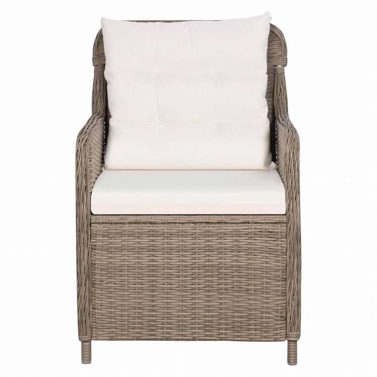 ■このガーデンダイニングセットは、エレガントなデザインで、お庭やパティオでのアルフレスコダイニングやリラックスタイムに大活躍します。 この屋外家具セットは、頑丈な粉体塗装仕上げのスチールフレームを備えており、非常に安定性と耐久性に優れています。耐水性のポリエチレン製籐を使用しており、お手入れ簡単で毎日の屋外での使用にも耐えうる強度の高い設計。天板は無垢のアカシアウッドでできており、安定性に優れています。厚みのあるやわらかい座面クッションは座り心地を抜群です。お手入れの少ないポリエステル製のクッションカバーは、簡単に取り外して洗うことができます。 注意:雨、雪、霜といった悪天候の場合には、カバーをかけることをお勧めします。