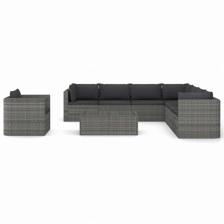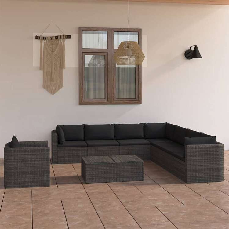 vidaXL ガーデンラウンジ9点セット クッション付き ポリラタン製 グレー家具 アウトドア家具 屋外家具セット(代引不可)